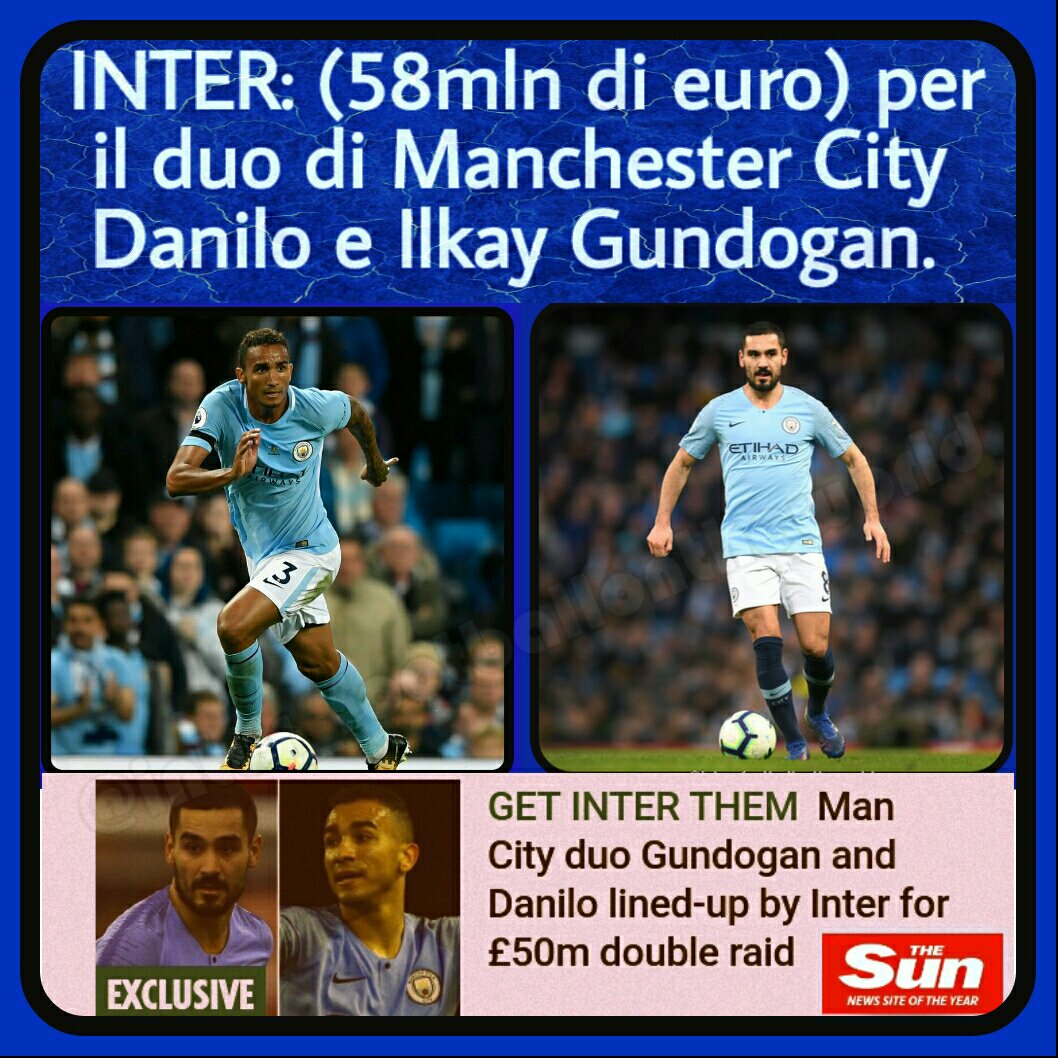L’INTER mette sul piatto 50 milioni di sterline (58mln di euro) per il duo di Manchester City Danilo e Ilkay Gundogan.