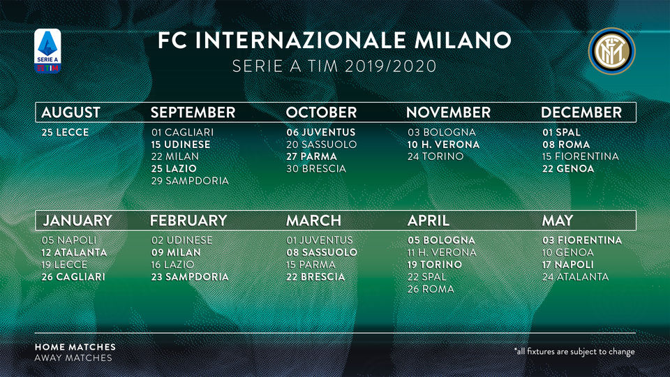 INTER: Calendario Serie A 2019-2020