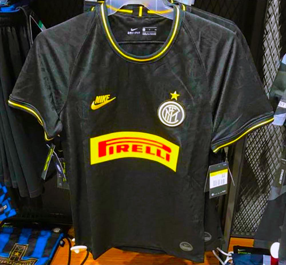 La terza maglia 2019/20 dell’Inter sarà nera con logo del club e dettagli in giallo. Il logo Pirelli sul petto sarà per la prima volta presente nella sua colorazione originale, con sfondo giallo e scritta in rosso. Le maniche e il colleto a girocollo saranno neri con una riga gialla, mentre neri saranno anche pantaloncini e calzettoni.