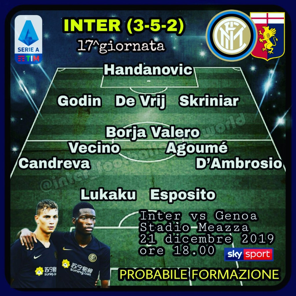 È l’ultima partita prima della sosta di Natale che permetterà ad Antonio Conte di recuperare molti infortunati. L’Inter comunque è chiamata alla vittoria contro il Genoa penultimo in classifica per rispondere alla vittoria di ieri della Juventus. Oltre ai soliti infortuni, il tecnico nerazzurro dovrà farea meno anche degli squalificati Lautaro e Brozovic.