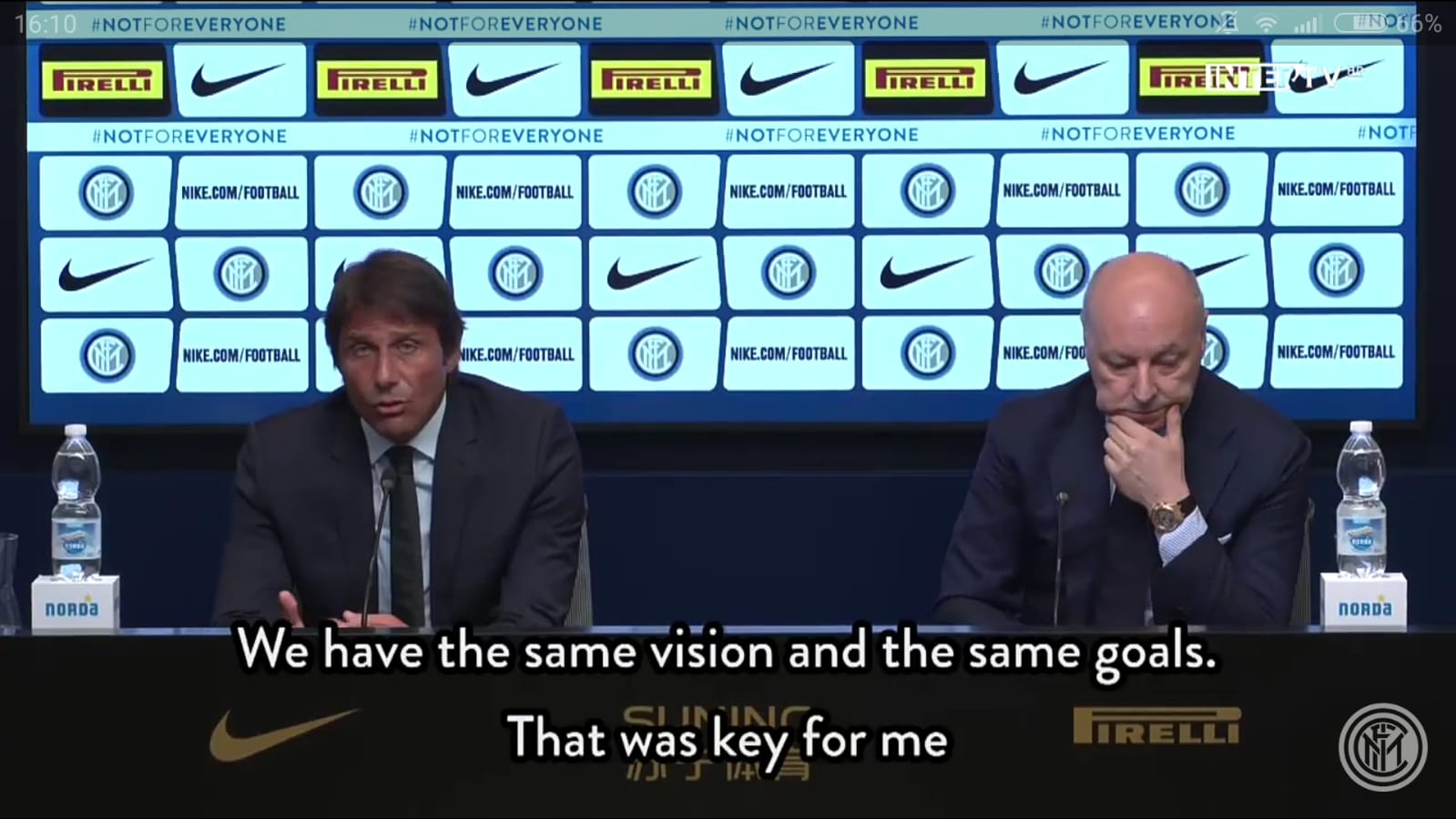 Nella nuova sede dell’Inter la prima conferenza stampa del nuovo allenatore: “Semplice scegliere l’Inter, abbiamo la stessa voglia e ambizione. Vincere subito? Non sono uno che si pone limiti. Sfidare la Juve sarà una grande emozione. Io top player? Quelli servono in campo”. L’ad Marotta: “Ci serviva un vincente come lui. Icardi alla Juve? Al momento lo escludo. Dzeko e Barella sono obiettivi, ma niente fretta”