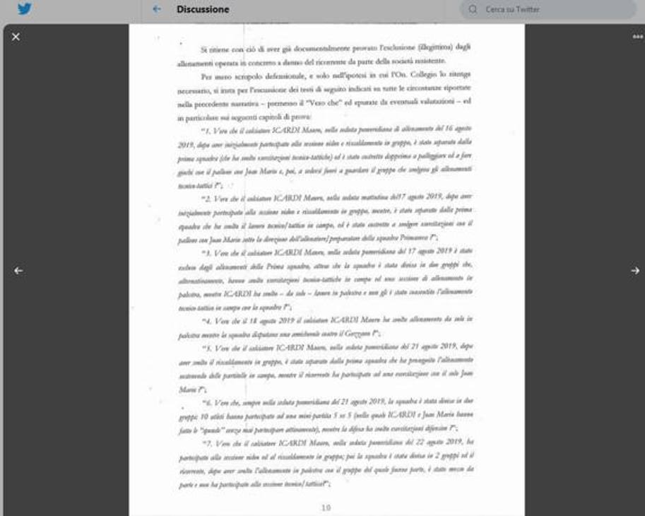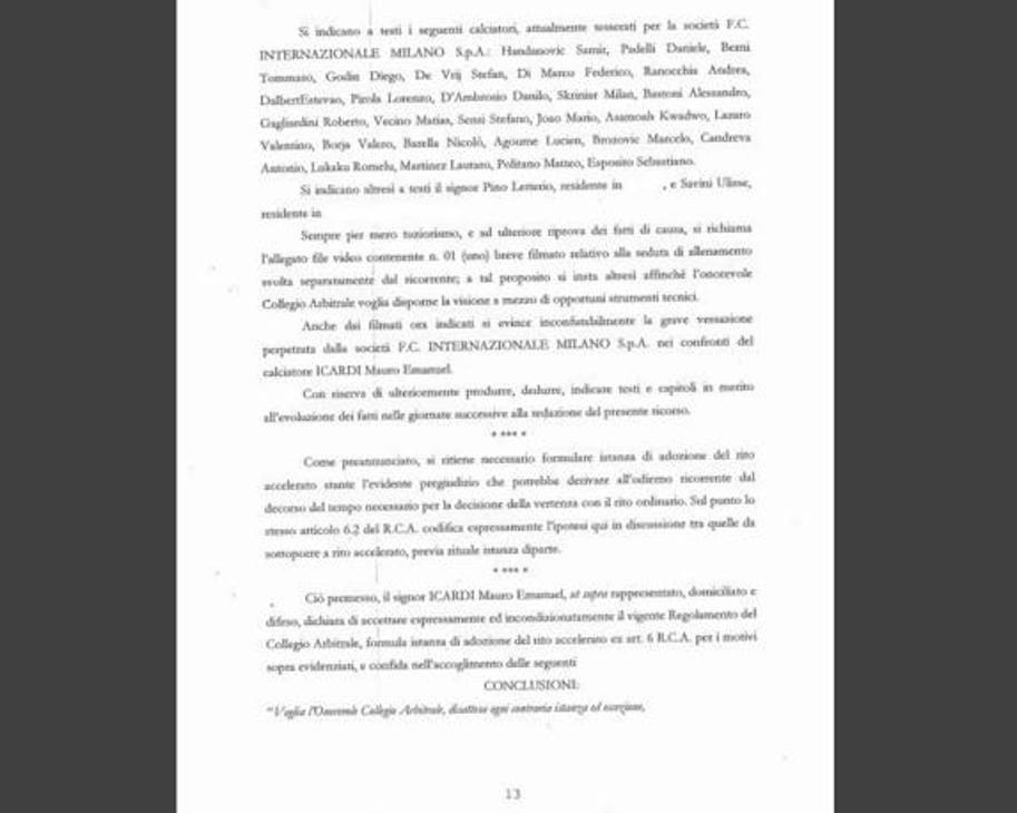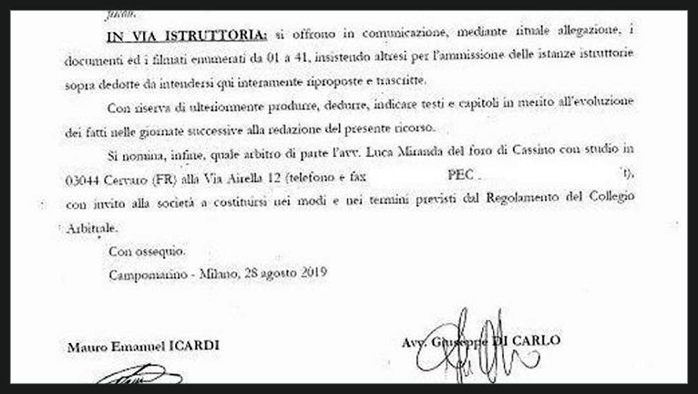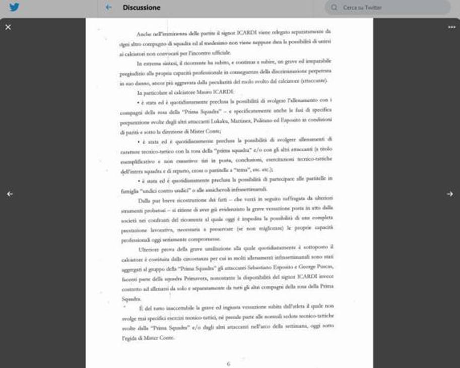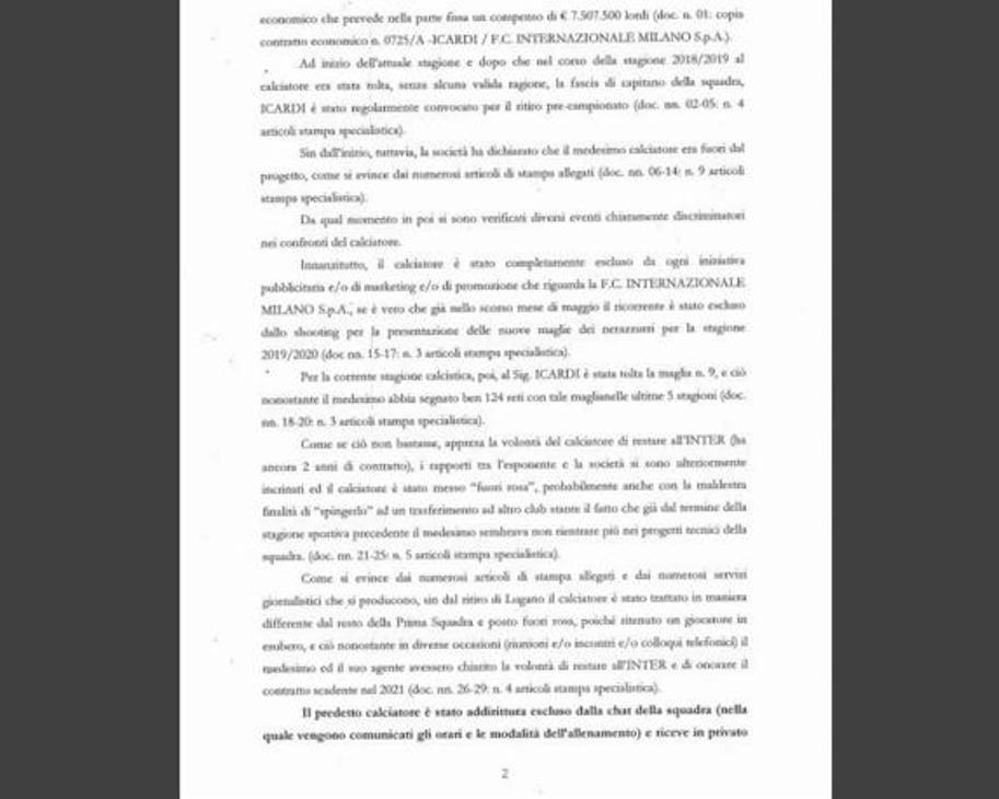 Dalla Gazzetta dello Sport – Punto per punto, le pagine introduttive dell’atto presentato dal legale dell’attaccante.