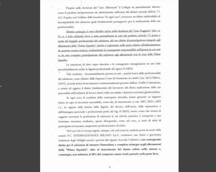 Cosa c’è dietro? L’ex capitano nerazzurro ha chiesto 1.501.500 euro di danni al club nerazzurro (il 20% del suo stipendio lordo di 7.507.500 euro), oltre al reintegro a pieno titolo in squadra. I motivi principali? L’argentino si sente “gravemente discriminato e vessato. Leso nella dignità, nell’immagine, nella reputazione professionale e personale”. La guerra tra Icardi e l’Inter ora passa in tribunale, dove sarà un lodo arbitrale a stabilire chi ha ragione tra le parti. Il club nerazzurro entro martedì nominerà il suo arbitro di parte.