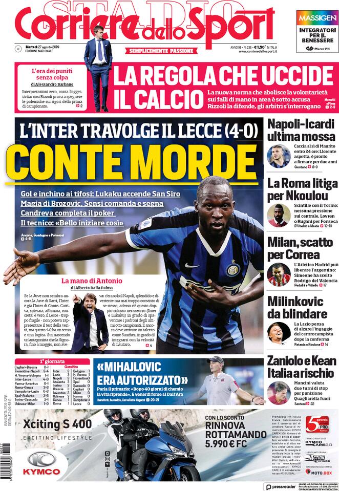Lautaro Martinez (33’ s.t. Politano), Lukaku. All. Conte